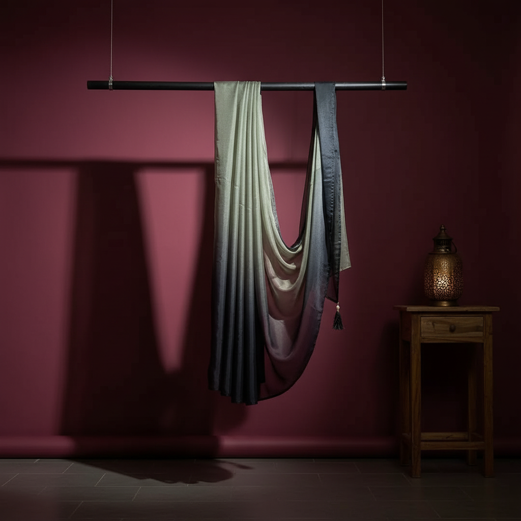 This Indo silk saree comes in an elegant charcoal grey and black color combination, crafted with a Fendy satin blend for a soft sheen and refined texture. The satin surface enhances the richness of Indo silk while giving the saree a graceful drape and comfortable feel. Designed for formal occasions, festive events, and evening gatherings, it offers a balanced look that suits both traditional and modern styling. Durable fabric, neat finishing, and a subtle shine make this saree a dependable choice for those who prefer understated elegance with long-lasting quality.