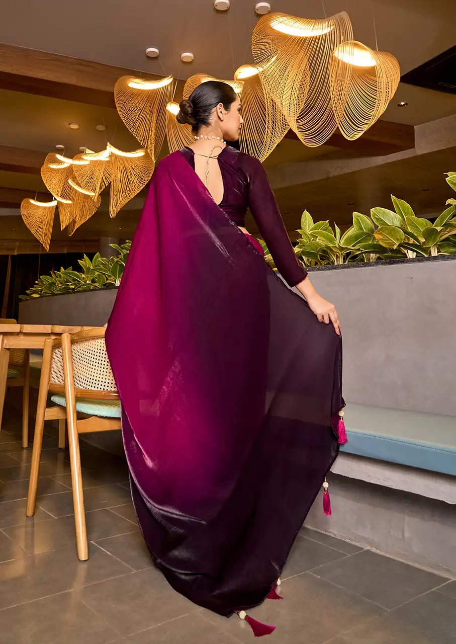 Wine & Plum Indo Silk Saree in Fendy Satin BlendWine & Plum Indo Silk Saree in Fendy Satin Blend