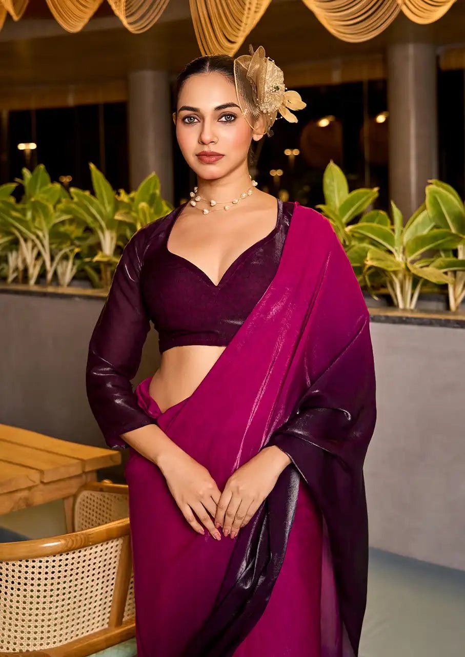 Wine & Plum Indo Silk Saree in Fendy Satin Blend