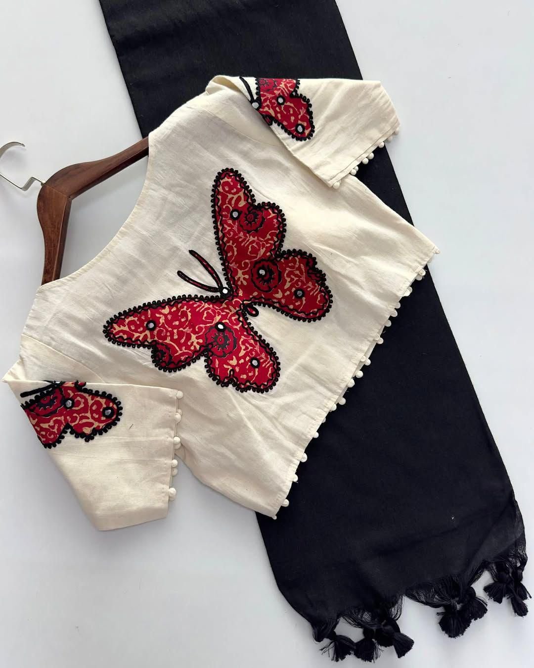 😍 Blouse Fabric: Heavy Pure Khadi Cotton with detailed appliqué work